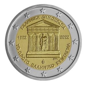 Το έγχρωμο συλλεκτικό νόμισμα 2€ του 2022 γιορτάζει τα 200 χρόνια από το 1ο Ελληνικό Σύνταγμα. Ένα αναμνηστικό κομμάτι που αντικατοπτρίζει τη δημοκρατική παράδοση και την πολιτική κληρονομιά της Ελλάδας, ιδανικό για συλλέκτες.